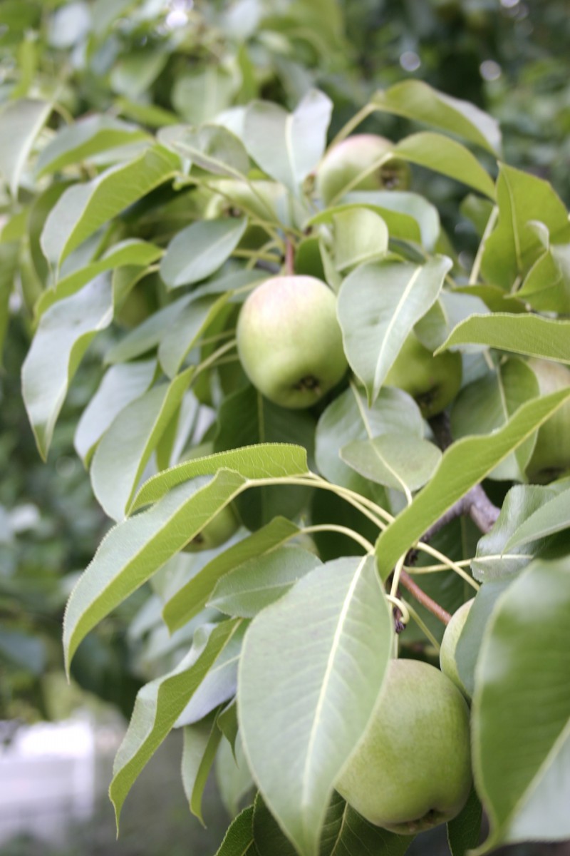 By June the fruit seemed to have reached its maximum size. I waited to see if they would turn red. Or yellow. I really still had no idea what kind of fruit I was to expect! The tops were still round but the bottoms looked exactly like apples.